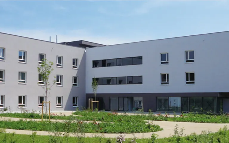 Chaque unité dispose d'une salle de bain commune avec baignoire à hauteur variable et/ou chariot douche Présence d'un Pôle d'Activités et de Soins Adaptés qui propose des activités sociales et thérapeutiques 7 unités réparties sur un rez-de-chaussée et 2 étages comportant chacune un espace petit déjeuner + 1 salle à manger à chaque étage, salon de coiffure, salle de culte, salle kiné, salle des fêtes, local internet avec web-cam Salon de réception à l'accueil et espaces de convivialité à chaque étage Situé au bord de la forêt, l'EHPAD dispose de 2 patios-jardins extérieurs sécurisés Commerces, bibliothèque et arrêt de bus à proximité Facilité de parking